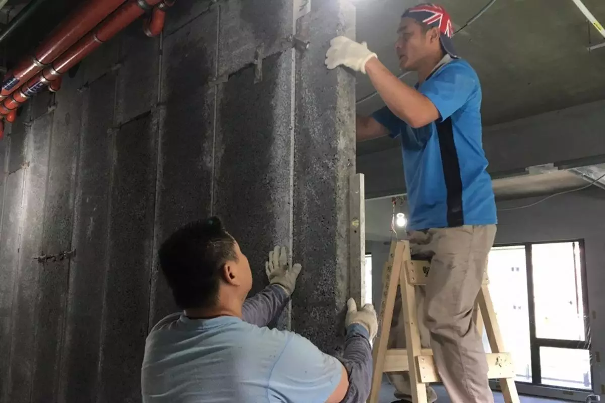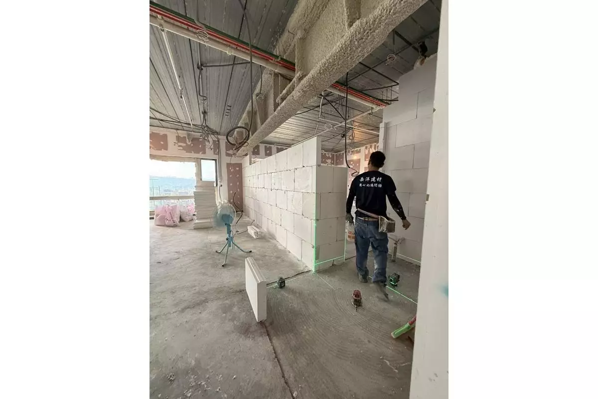 其次,「陶粒牆」為岳洋建材創立初期的主力產品,廣泛應用於內隔間與樓板工程。陶粒牆採半乾式施工,施工速度快且現場整潔度高,每人每日可完成約20至25平方米。其材質具備防蟲害與抗壁癌特性,能有效避免潮濕環境造成的牆面問題。此外,陶粒牆厚度僅8至10公分,相較傳統紅磚牆更節省空間,特別適合現代住宅與商業空間使用。